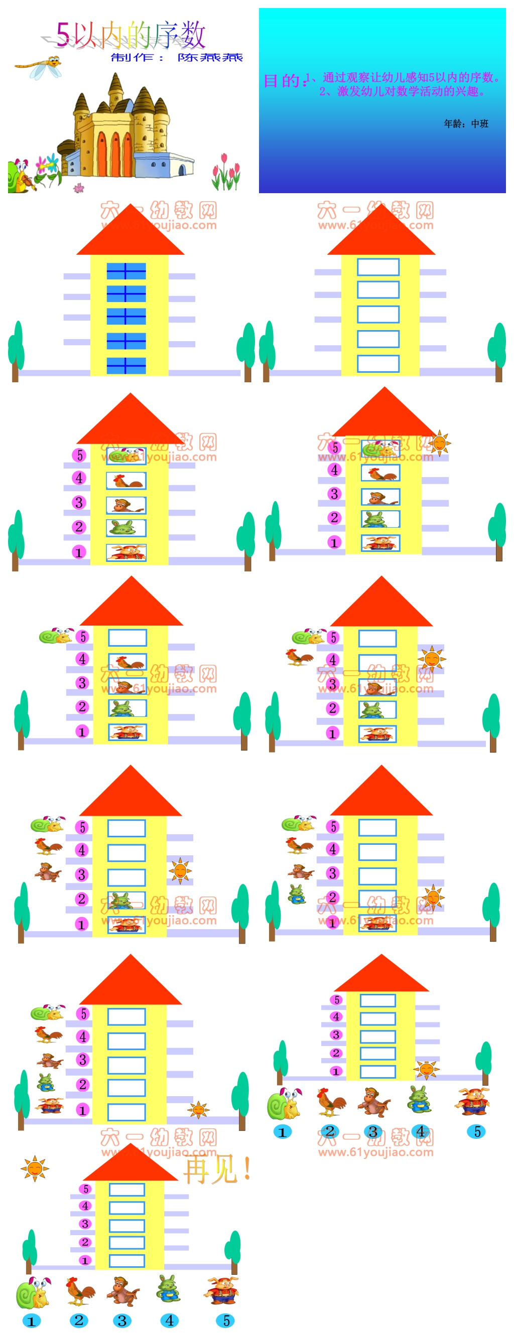 小班数学:5以内的序数 小班 本站VIP用户可免费下载本课件 抱歉,此资源仅限VIP下载,请先登录 此资源仅对VIP开放下载请先登录 数学 分享到: 上一篇小班数学:4以内数的点数 下一篇小班社会《说说我自己》